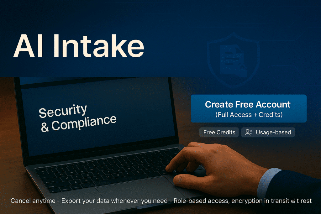 Skip sales gates and hidden fees. Create a free account with credits to run real intakes, generate Legal Action Plans, and try Matter Assistant—then scale usage as value is proven. You control spending with caps and alerts, and you can cancel anytime.