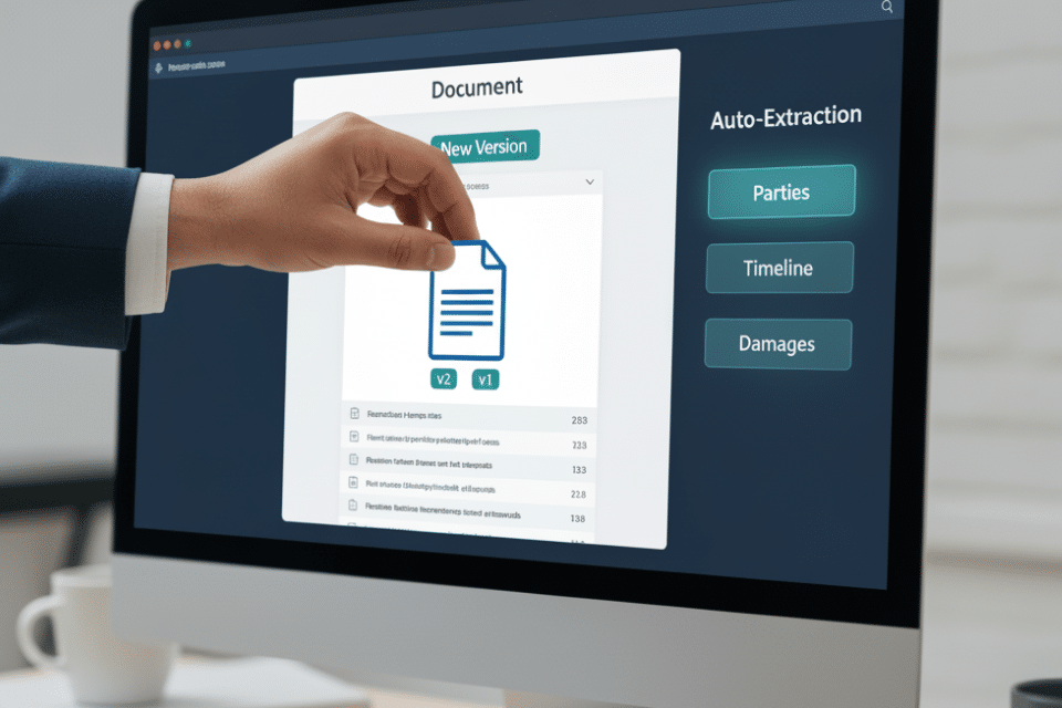 Auto-extracted parties, timeline, damages, and key facts—no re-keying, no scattered attachments.